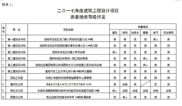 附表1:二0一七年度建筑工程设计项目质量抽查等级评定