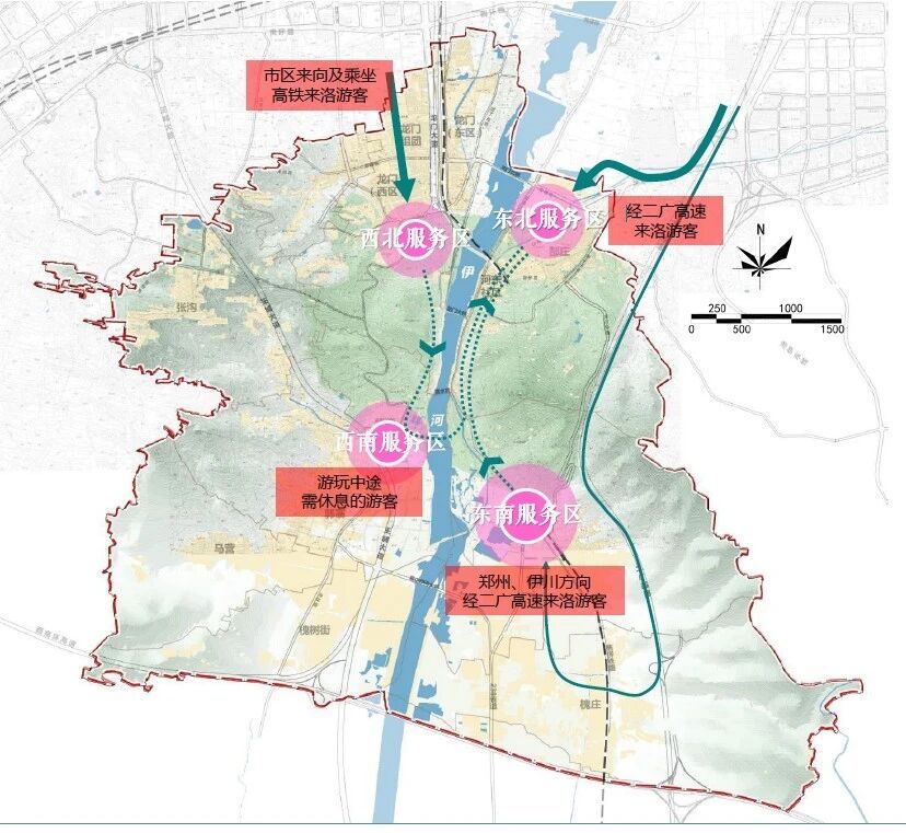 为破解龙门石窟“孤立发展”问题、提升对区域文旅的辐射带动能力,需从“内部交通升级、设施效能优化、外部资源联动”三方面协同发力:在内部交通组织上,重点完善景区交通闭环——增设东山至西山跨河便捷接驳系统(如观光轮渡、景观栈道),平衡东西山景点游客分布不均问题;同步增设西南服务区与东南服务区,配套停车场、票务中心及游客集散空间,构建“快进快出”的多方向入园交通体系,减少游客入园拥堵。